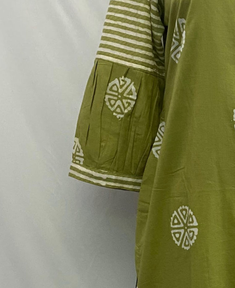 Pink and white striped hand blockprinted cotton three piece ready suit